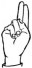 На ћирилици написано РАДНА КЛИСАРИЋ састоји се из 13 слова [?]. Исписано ћириличном једноручном азбуком за глувонеме:
